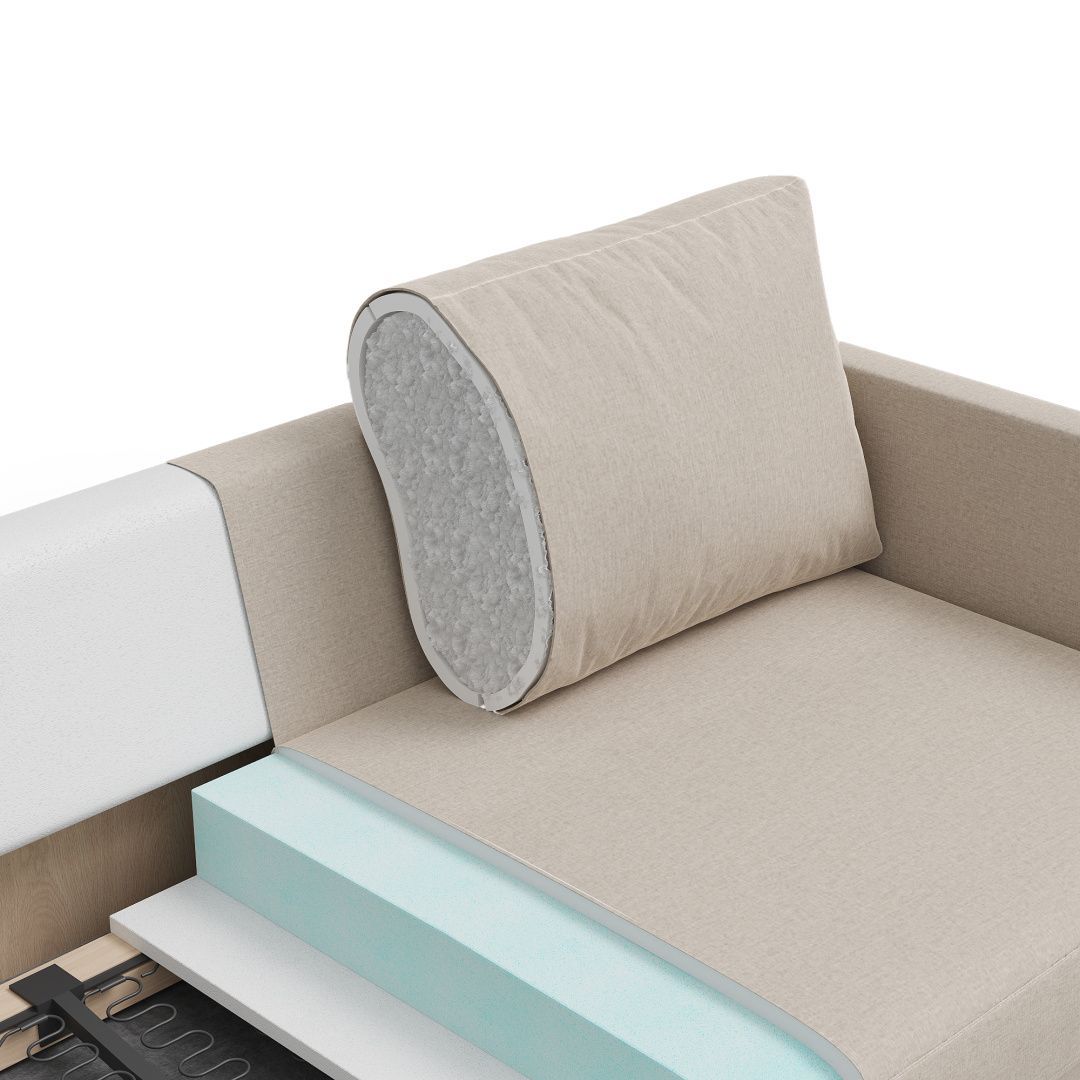 В качестве наполнения мы используем высокоэластичный пенополиуретан, чтобы изголовье и основание кровати сохраняли свою форму и обеспечивали комфорт. Далее каркас кровати оформляется высококачественной тканью, которая является одновременно прочной и стильной.