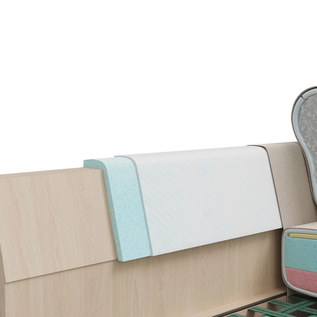 В качестве наполнения мы используем высокоэластичный пенополиуретан, чтобы изголовье и основание кровати сохраняли свою форму и обеспечивали комфорт. Далее каркас кровати оформляется высококачественной тканью, которая является одновременно прочной и стильной.