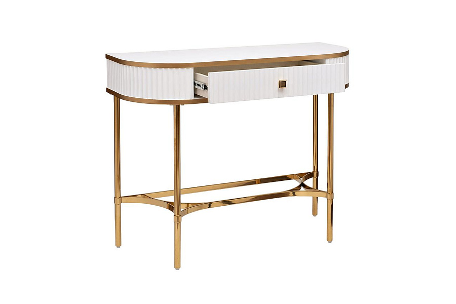 KFG166 Консоль с 1 ящиком белая/металл золото 100*40*78см